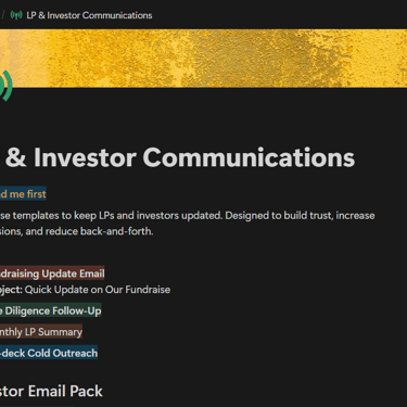 Investor Comms Pack — templated LP reports and email scripts pre-linked to data rooms.
