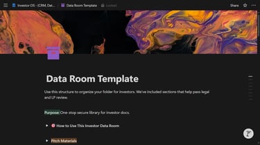 Secure Data Room — instant access for LPs and auditors via private Notion pages.