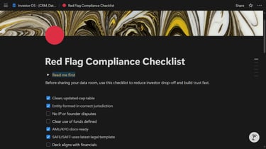Red-Flag Checklist — automated compliance triggers for due-diligence phases.