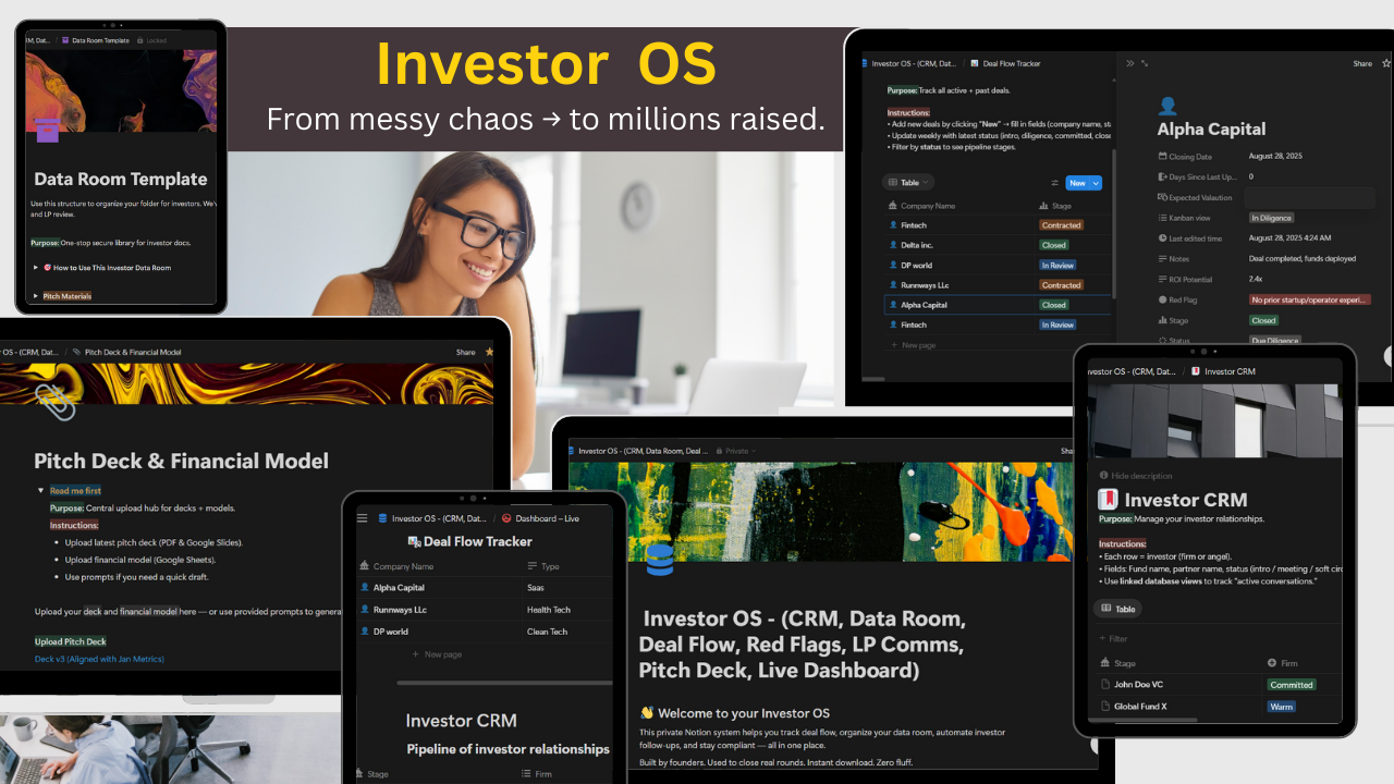 Our mission is simple: to level the playing field for entrepreneurs worldwide. We believe that great ideas shouldn’t fail because of broken fundraising systems or lack of access to structured investor tools. With Investor OS, we empower founders to run professional-grade investor operations from day one—so they can focus on building, scaling, and closing deals with confidence.